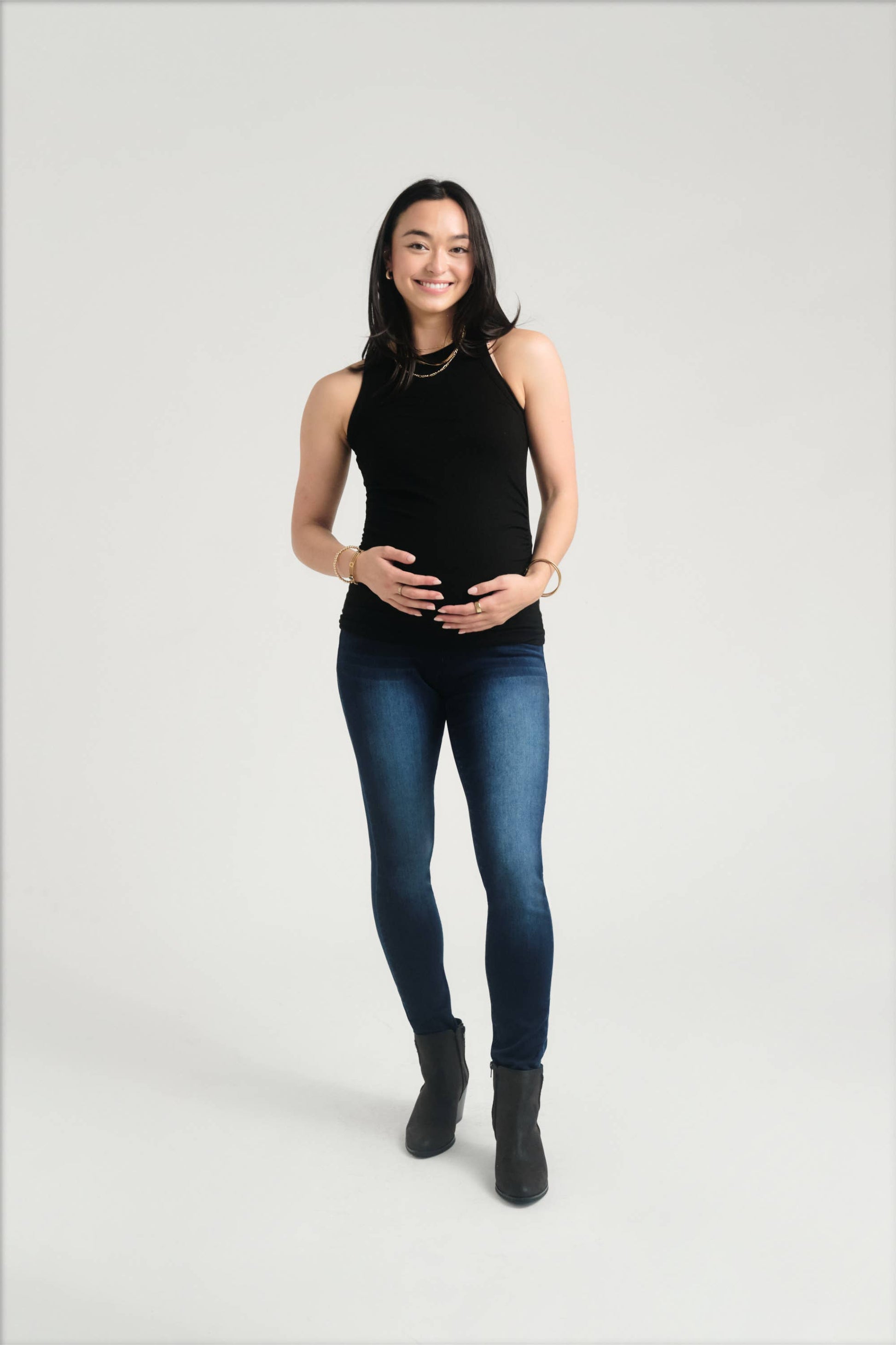 Elevate your maternity style with our 34" Maternity Butter Denim Skinny Jean featuring a comfortable belly band for ultimate support and style. Embrace the sleek and trendy skinny jean design that flatters your curves while providing a buttery soft feel against your skin. Specifically crafted for tall women, these jeans offer the perfect length for a chic and modern look. Experience the blend of fashion and comfort with our maternity jeans, designed to accompany you through this special journey. Don't compromise on style during pregnancy - indulge in the luxurious comfort of our butter denim skinny jeans with a belly band today!