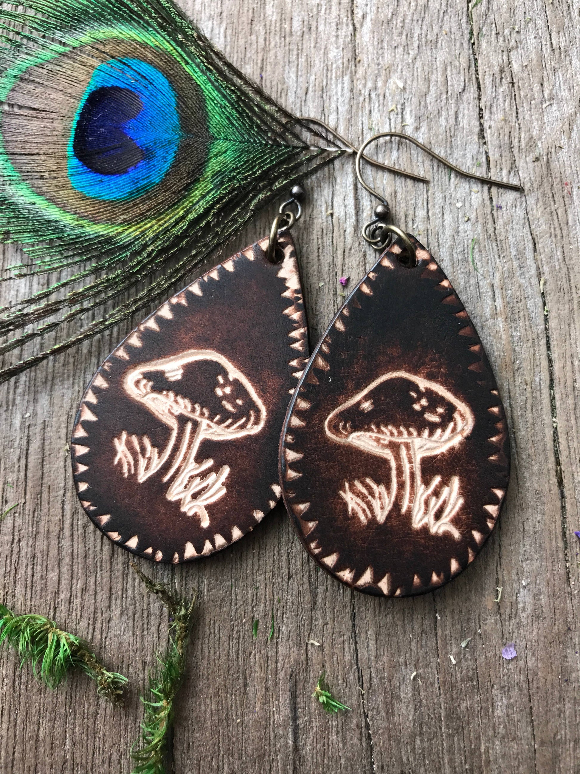 Don't miss out on the opportunity to elevate your style. Add these Boho Hippie Vintage Style Mushroom Leather Teardrop Earrings to your collection now!