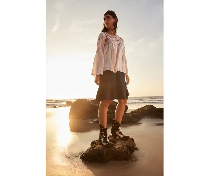 The Cheree Floral Delight Boho Top combines artistic detailing with a relaxed silhouette, making it a standout addition to any wardrobe. Featuring intricate floral embroidery, this top showcases a delightful pattern that embodies the essence of boho-chic style. The lightweight, free-flowing fabric ensures both comfort and ease of movement, perfect for casual outings or festival days. Designed with a flattering neckline and loose-fit sleeves, it offers a timeless and versatile look. Pair it with jeans, skirts, or shorts to create effortlessly stylish ensembles for any occasion.