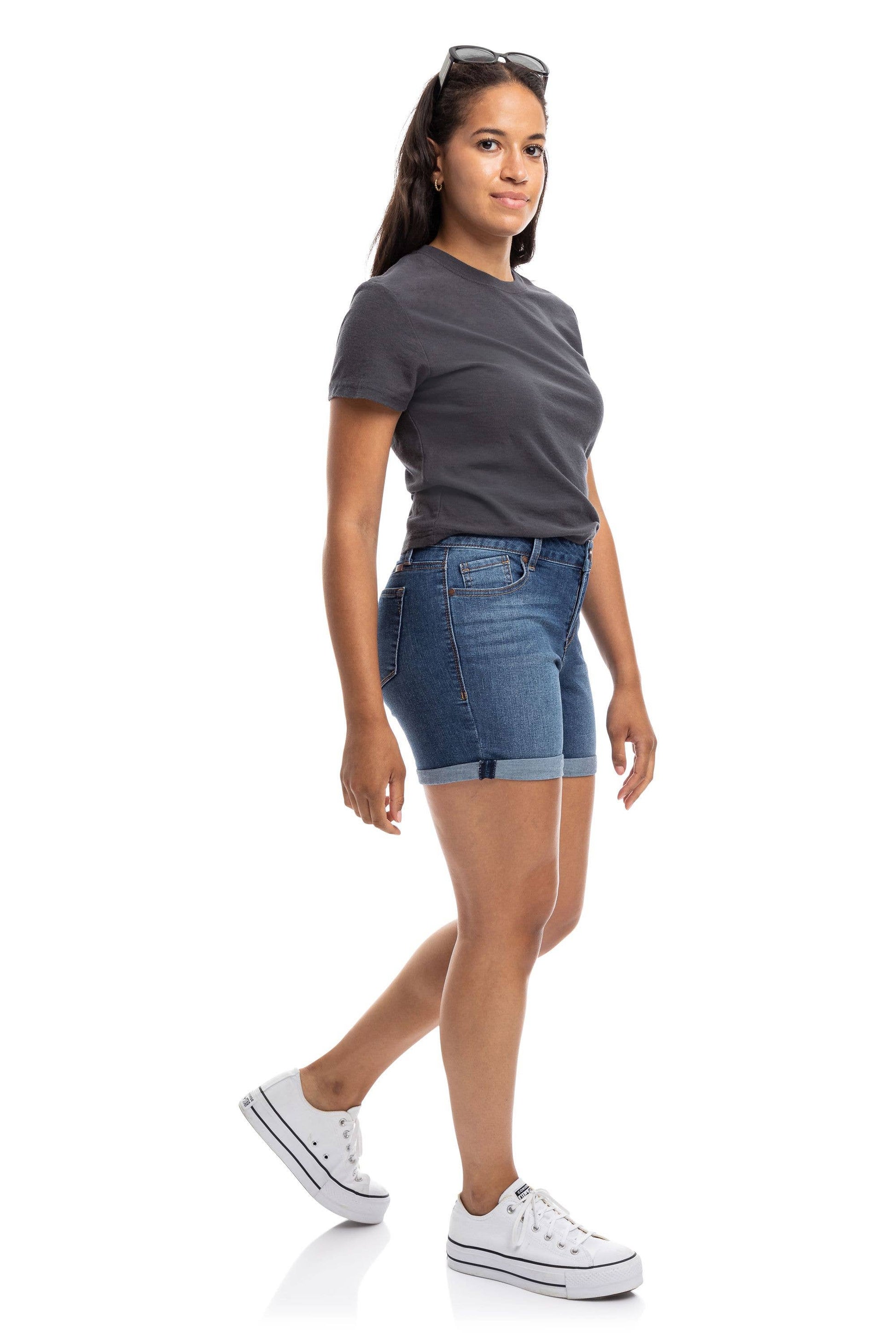 Eco-Friendly Roll Cuff Jean Shorts in Charlie