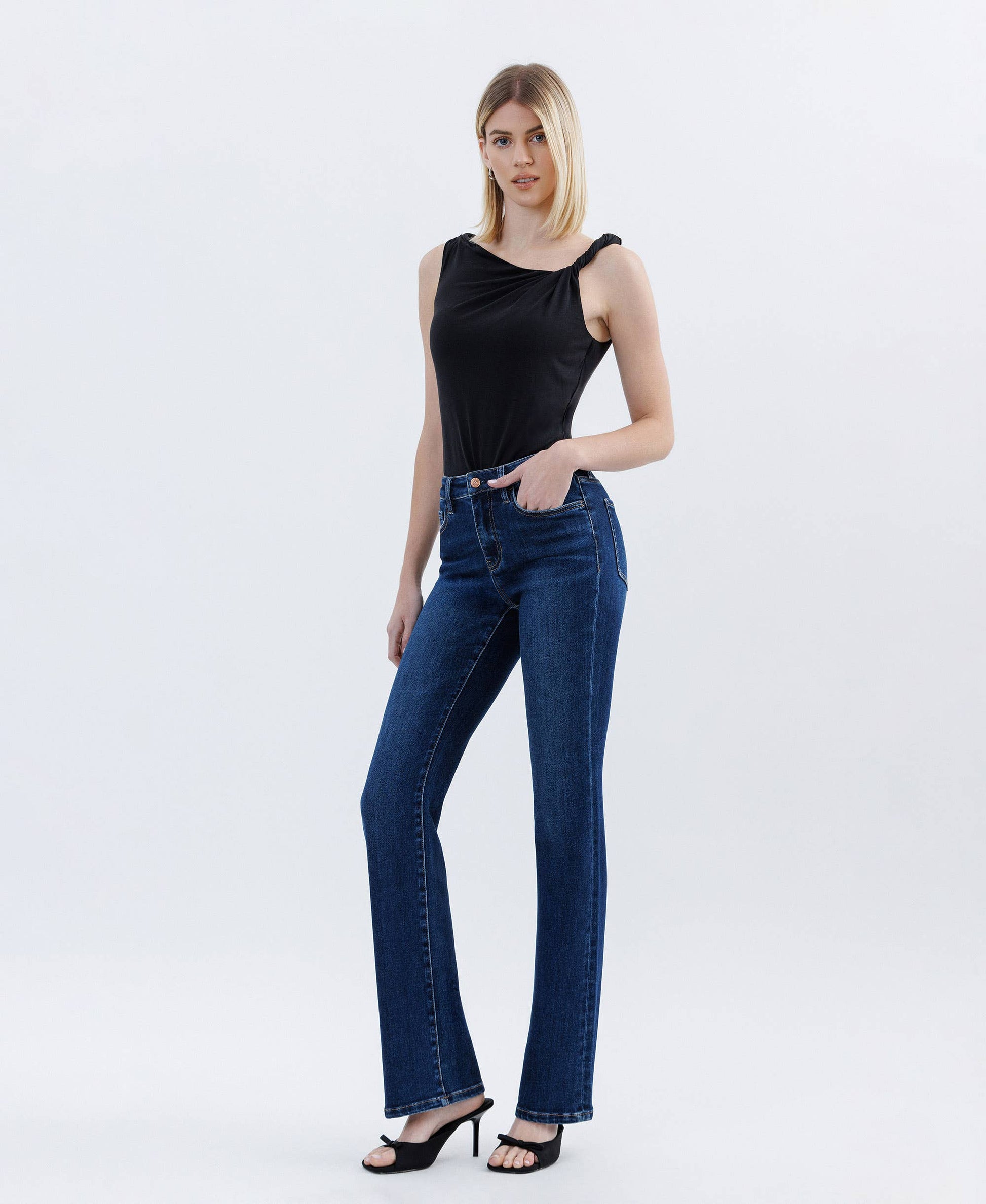 The Effective High Rise Bootcut by Lovervet combines a flattering fit with premium quality material, offering both comfort and style. Designed with a high-rise waist and built-in tummy control, these jeans provide a sleek silhouette that's perfect for everyday wear. The versatile bootcut design complements both casual and dressy outfits, making it an essential piece for any wardrobe. Featuring a classic dark wash, these jeans are easy to pair with your favorite tops and footwear. Upgrade your wardrobe with the Effective High Rise Bootcut by Lovervet for a timeless and polished look.