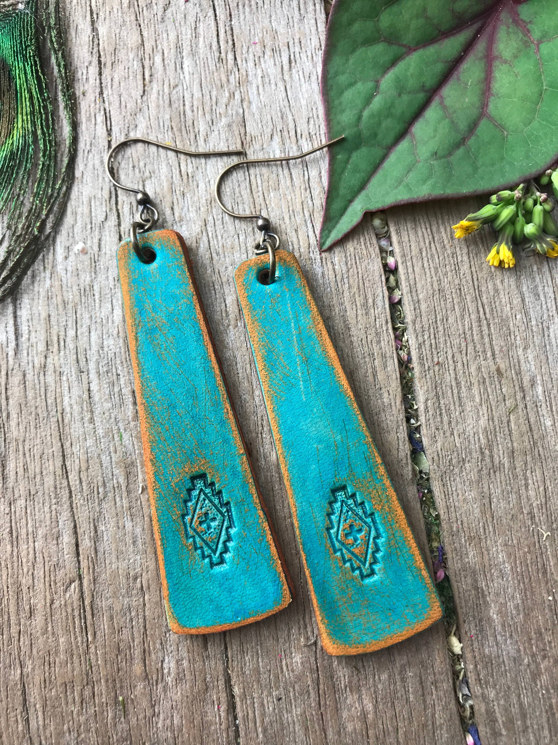 Add a touch of western charm to your outfit with these Hand Tooled Western Style Leather Bar Earrings. Each pair is meticulously crafted with unique hand tooling, making them truly one-of-a-kind. The western style design adds a rustic and stylish flair to any ensemble, whether you're dressing up for a night out or keeping it casual. Made from genuine leather, these earrings are not only fashionable but also durable and long-lasting. They are lightweight and comfortable to wear, making them perfect for all-day wear. Elevate your accessory game with these stunning Hand Tooled Western Style Leather Bar Earrings and make a statement wherever you go!