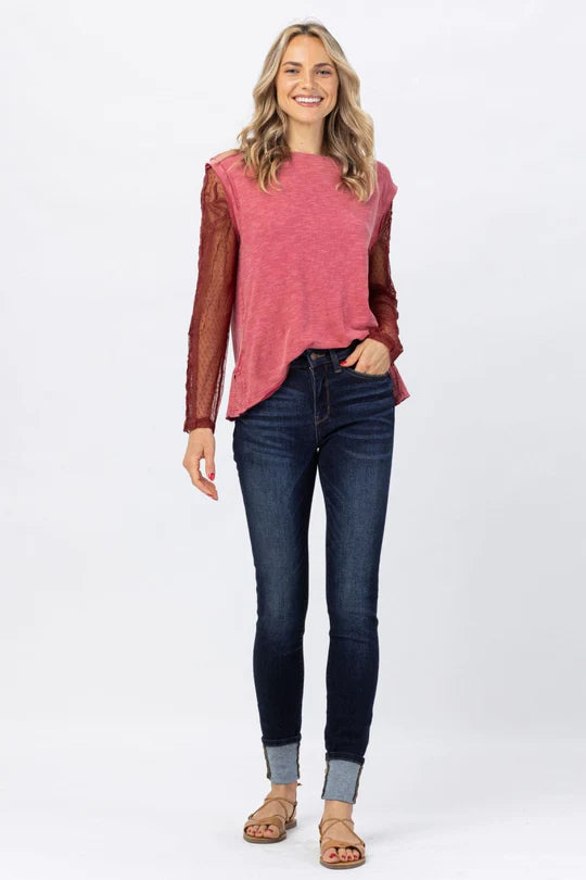 The Judy Blue Skinny Cuff jeans are a stylish and comfortable pair of jeans designed for women. The skinny fit provides a flattering silhouette, while the cuff detail adds a touch of trendy sophistication. These jeans are made with high-quality denim that is soft, comfortable, and stretchy, making them perfect for all-day wear. With a classic 5 pocket design, these jeans provide ample storage space for your essentials. The cuff detail adds a touch of elegance and can be dressed up or down depending on the occasion. These jeans are available in a range of sizes, ensuring the perfect fit for any body type.