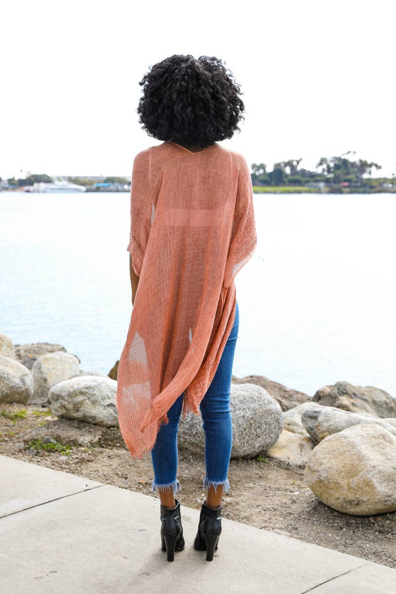 Lightweight Sheer Kimono with Sequin and Frayed Details