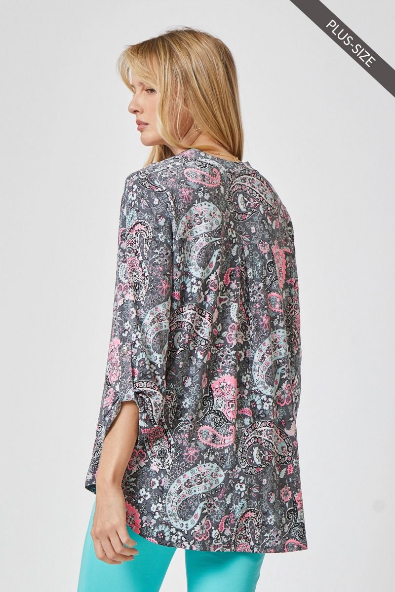Indulge in the timeless elegance of the Grey Paisley 3/4 top, a versatile and stylish addition to your wardrobe. Crafted with premium quality fabric, this top offers luxurious softness coupled with lightweight comfort, ensuring you feel fabulous all day long. The wrinkle-free design makes it a breeze to care for, perfect for the busy individual who is always on the move. Embrace the travel-friendly nature of this top, cooler than traditional linen and other materials, making it your ultimate 'on the go' essential. The Lizzy Collection embodies sophistication and practicality, a must-have for those who appreciate both style and convenience.