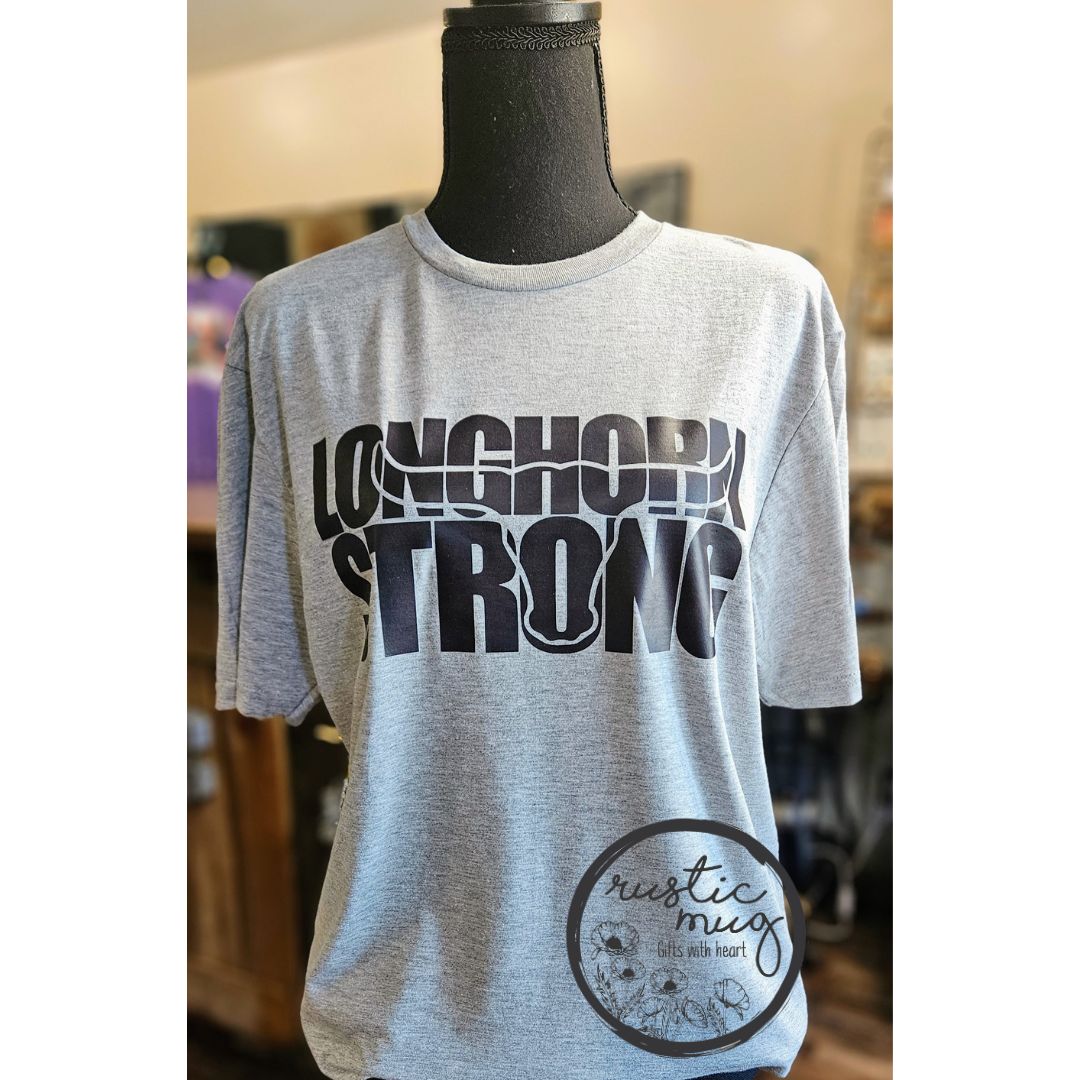 Step up your style game with the Longhorn Strong Tee! Crafted with high-quality fabric, this t-shirt offers both comfort and durability, making it perfect for everyday wear. The comfortable fit ensures that you can move with ease throughout the day, whether you're running errands or hitting the gym. With its stylish design featuring the iconic Longhorn logo, this tee is a must-have for any Longhorn Fan. Show off your district pride and support your favorite team with the Longhorn Strong Tee. Add it to your cart now and wear your Longhorn pride with confidence!
