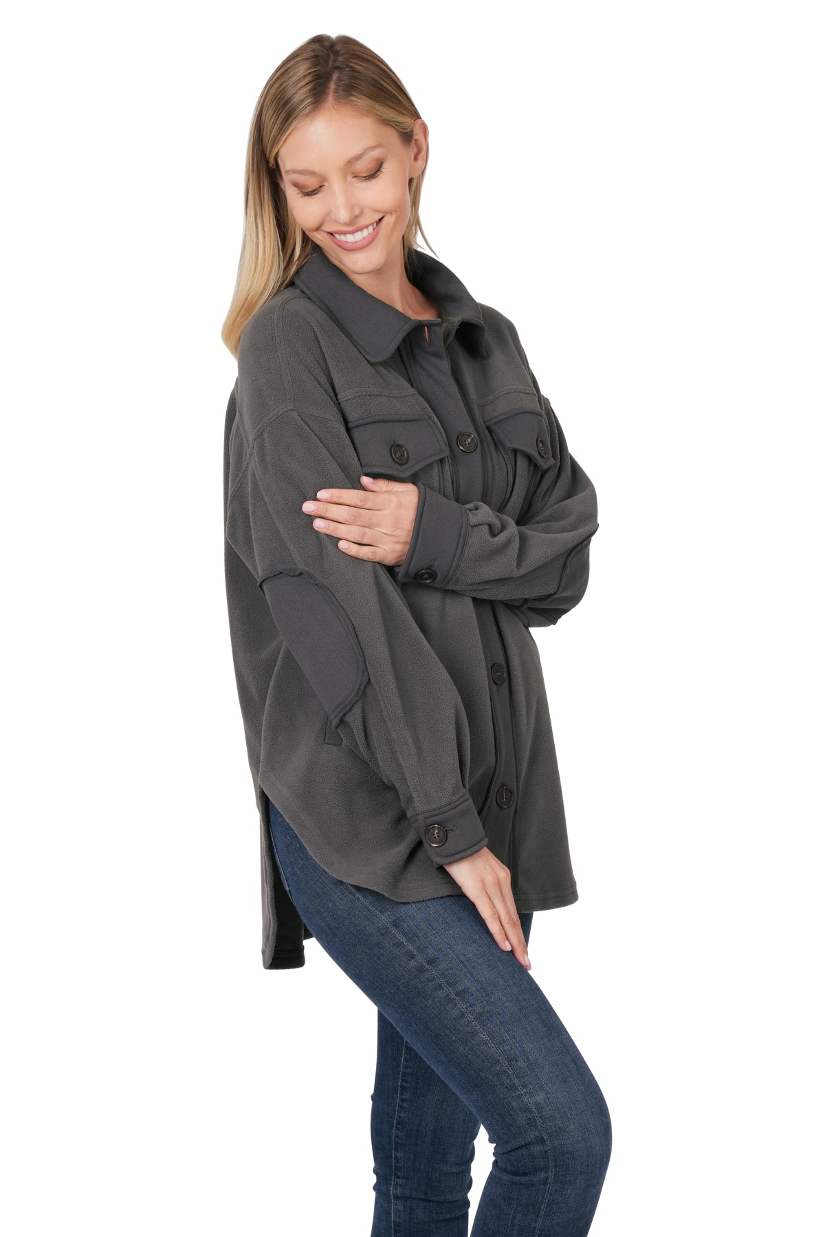 Looking for the perfect cozy and comfortable layering piece? Look no further than our Oversized Basic Fleece Shacket! This trendy and versatile garment is a must-have for any fashion-forward individual. With its oversized fit, it provides a relaxed and effortless style that's perfect for any occasion. Made from high-quality fleece, it will keep you warm and snug during the colder months. Whether you're dressing it up with a pair of jeans and boots or keeping it casual with leggings and sneakers, this shacket is the ultimate wardrobe staple.