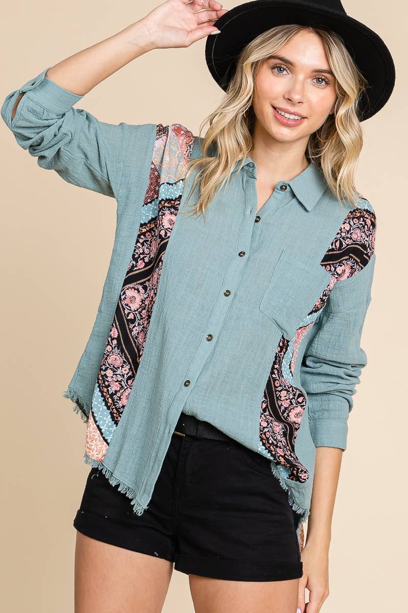 Patchwork Frayed Hem Shirt