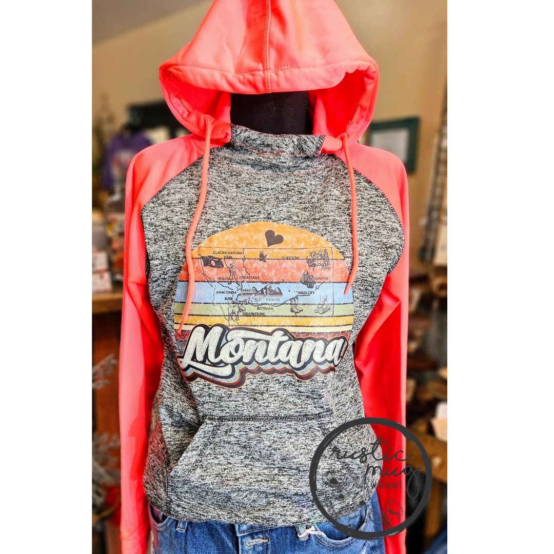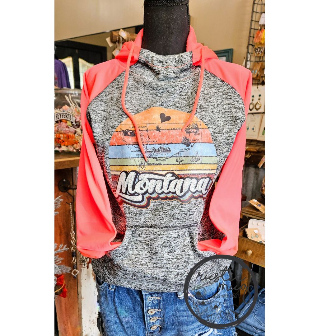 Step back in time with the Retro Montana Fire Coral and Charcoal Flecked Hoodie. This hoodie combines a retro design with a unique color combination that is sure to turn heads. Made from high-quality materials, it is not only stylish but also comfortable and warm, making it perfect for those chilly days and nights. Whether you're lounging at home or heading out for a casual outing, this hoodie is a must-have addition to your wardrobe. Embrace the vintage vibes and stay cozy in style with the Retro Montana Fire Coral and Charcoal Flecked Hoodie. Add it to your cart now and make a fashion statement that will never go out of style!