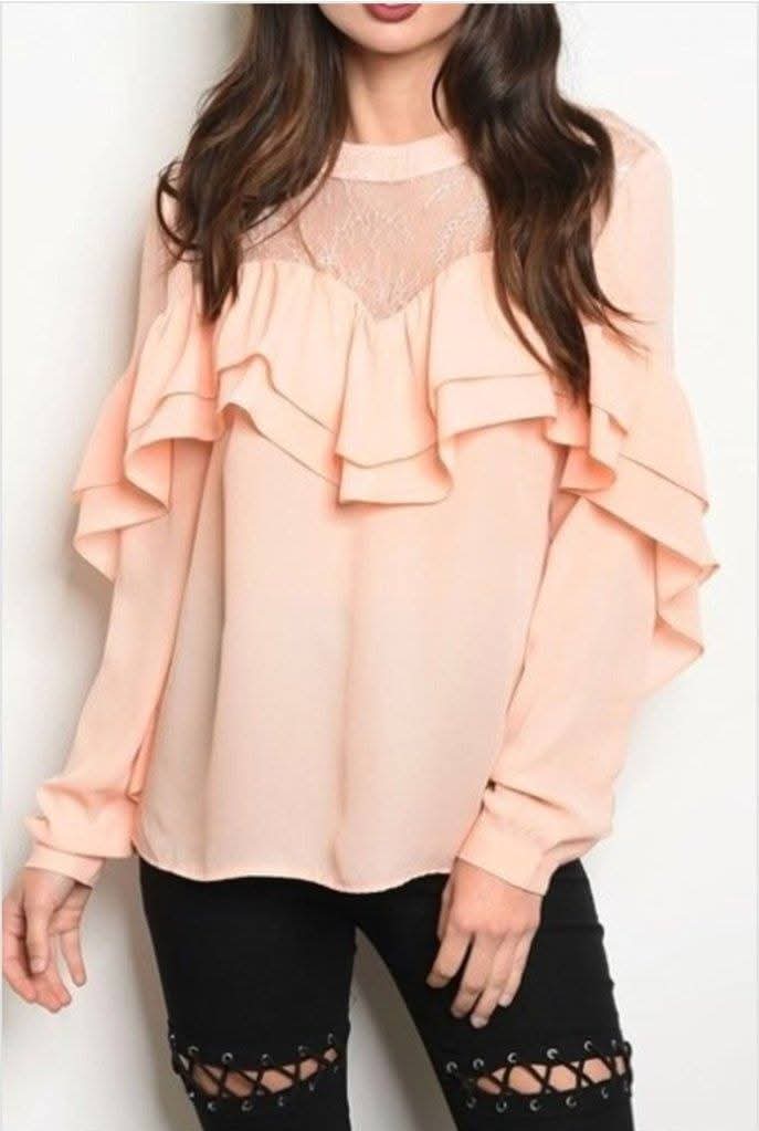 The Ruffles and Lace Top brings together feminine design and elegant details for a sophisticated yet versatile look. Featuring delicate lace accents and soft ruffle trims, this top offers a refined aesthetic that enhances any wardrobe. The lightweight fabric ensures comfort and ease of movement, while the relaxed fit makes it suitable for both daytime and evening wear. Perfectly paired with classic black denim and heels, this piece transitions seamlessly from casual outings to more formal occasions. Its timeless appeal and intricate design details make it a standout choice for any style-conscious individual.