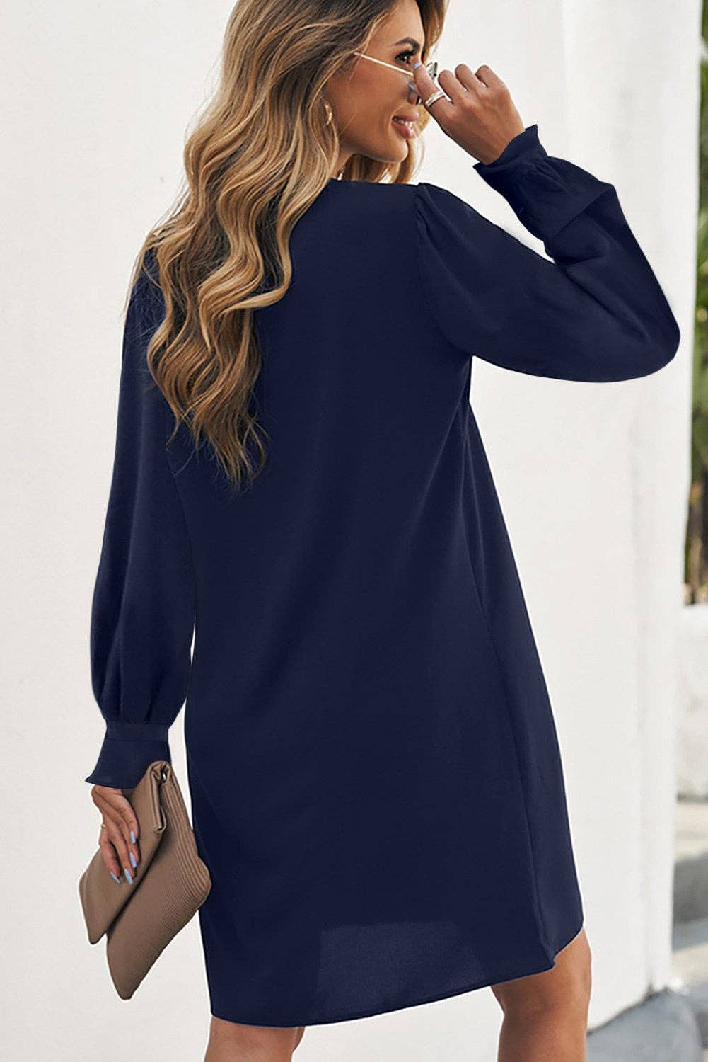 Indulge in sophistication with our Long Sleeve Pleated Dress! This elegant piece features a flattering silhouette that accentuates your curves and exudes timeless charm. The v-neck adds a touch of allure, while the ruffle sleeves lend a playful yet chic vibe. Perfect for any occasion, this dress transitions seamlessly from day to night, offering a versatile style that effortlessly elevates your look. Embrace elegance and style with our Long Sleeve Pleated Dress - a must-have addition to your wardrobe for those who appreciate fashion that speaks volumes in grace and allure.
