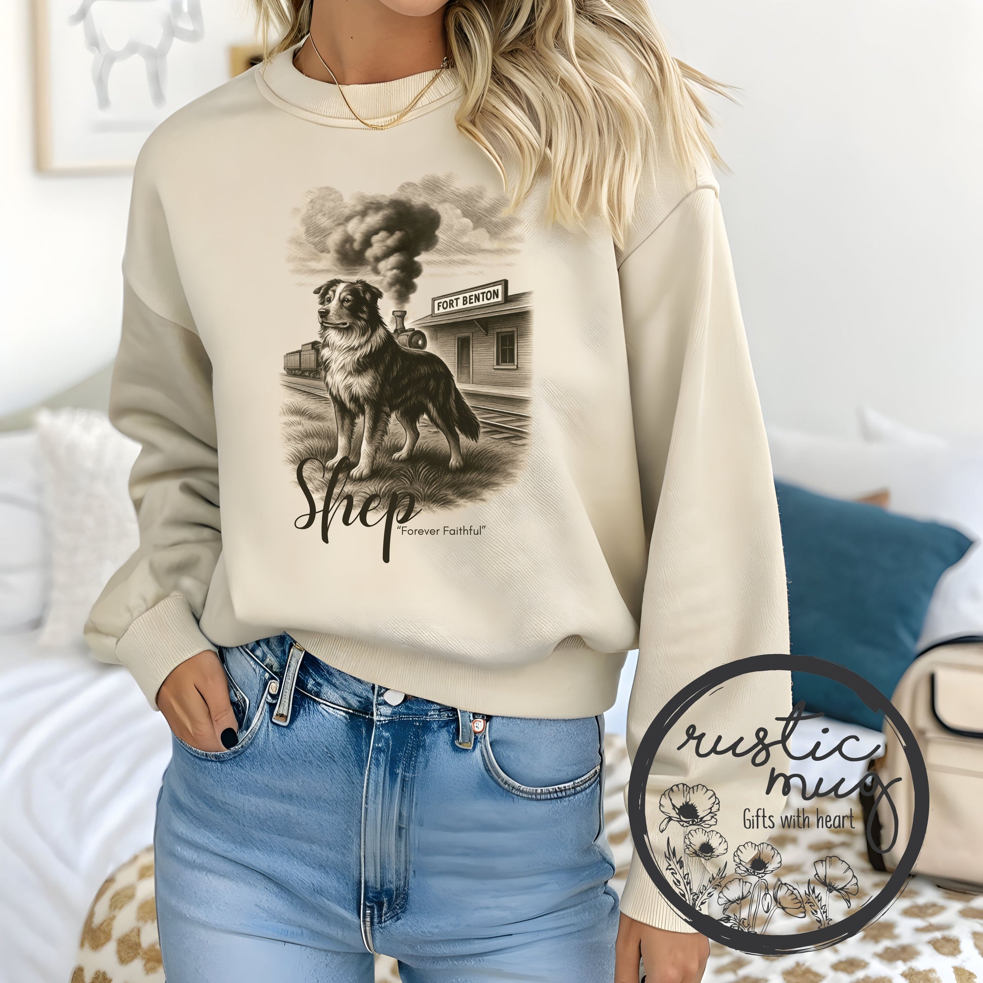 The Shep Forever Faithful Sweatshirt combines comfort, durability, and a touch of history in a stylish design. Crafted from soft, high-quality materials, this sweatshirt ensures a comfortable fit that lasts through everyday wear. Featuring a design inspired by Shep, the loyal dog of Fort Benton, MT, and the historic train depot, it pays homage to a heartwarming story of faithfulness and local heritage. Perfect for history enthusiasts or anyone looking for a meaningful addition to their wardrobe, this sweatshirt blends timeless storytelling with modern style. Wear it to show your appreciation for Shep's legacy and the rich history of Fort Benton.