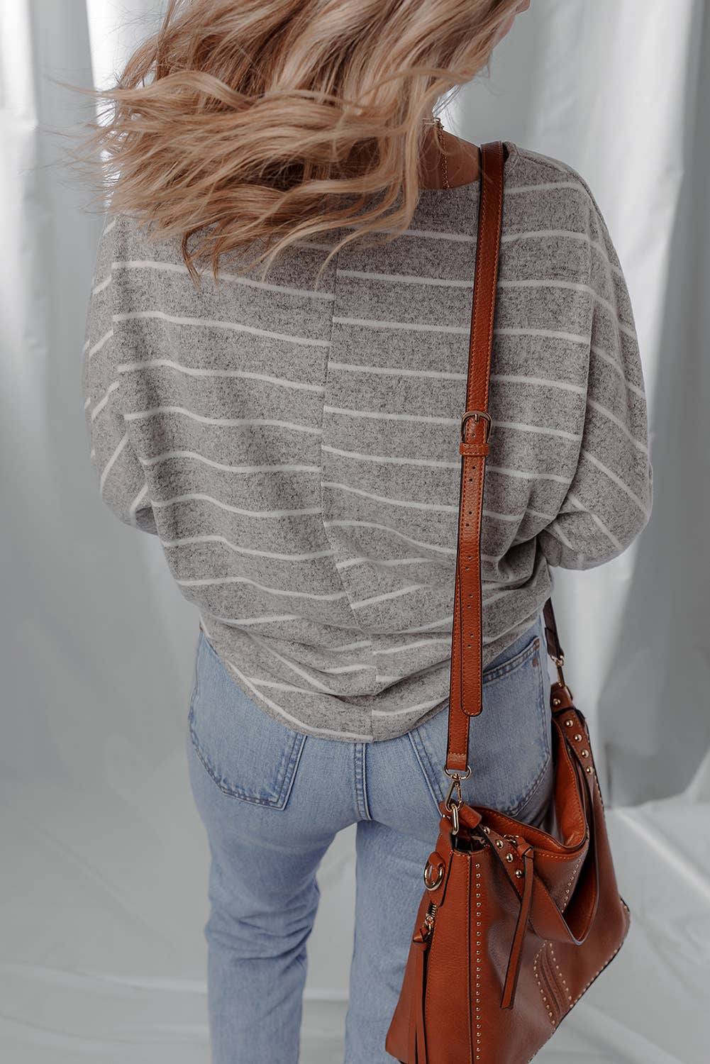 Experience effortless style and comfort with the Stripe Dolman Sleeve Drop Shoulder Top. Designed with a relaxed drop shoulder and dolman sleeves, this top provides a casual yet polished look suitable for various occasions. The soft, lightweight fabric ensures all-day comfort, while the classic stripe pattern adds a timeless touch to your wardrobe. Its versatile design pairs well with jeans, skirts, or leggings, making it an excellent choice for both casual outings and relaxed evenings. Whether you're lounging at home or stepping out for a day with friends, this top offers a perfect blend of style and ease you'll appreciate.