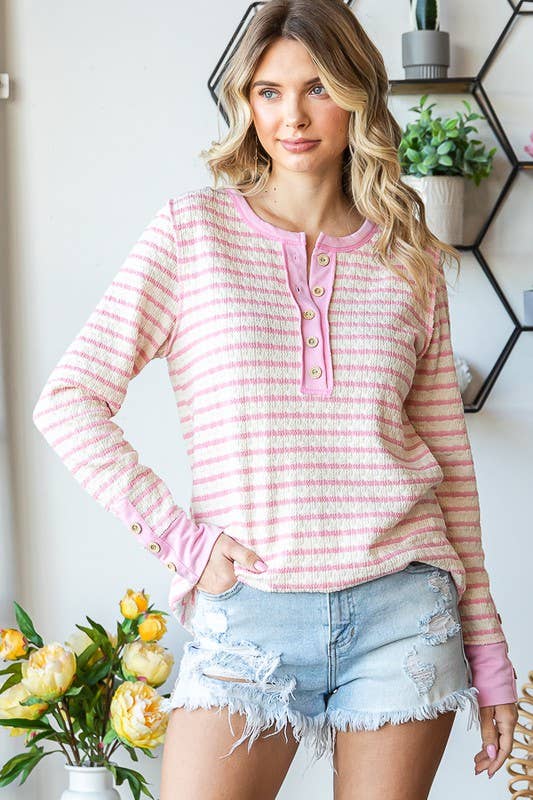 Add our Stripe Textured Button Front Top to your cart now and elevate your style game.