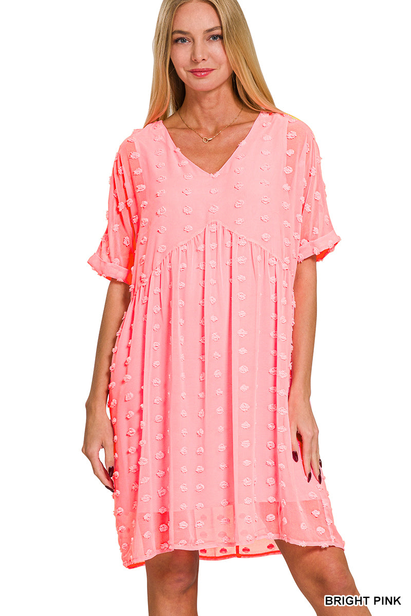 Step into elegance with our Swiss Dot Baby Doll Dress. Designed with an exquisite attention to detail, this dress features a delicate Swiss dot pattern that adds a touch of sophistication to any occasion. Made from a soft and breathable fabric, it offers all-day comfort without compromising on style. The flattering silhouette flares out from the waist, creating a feminine and romantic look. Whether you're attending a wedding, a garden party, or a special date night, this dress is a must-have in your wardrobe. Add it to your cart now and let your inner beauty shine!