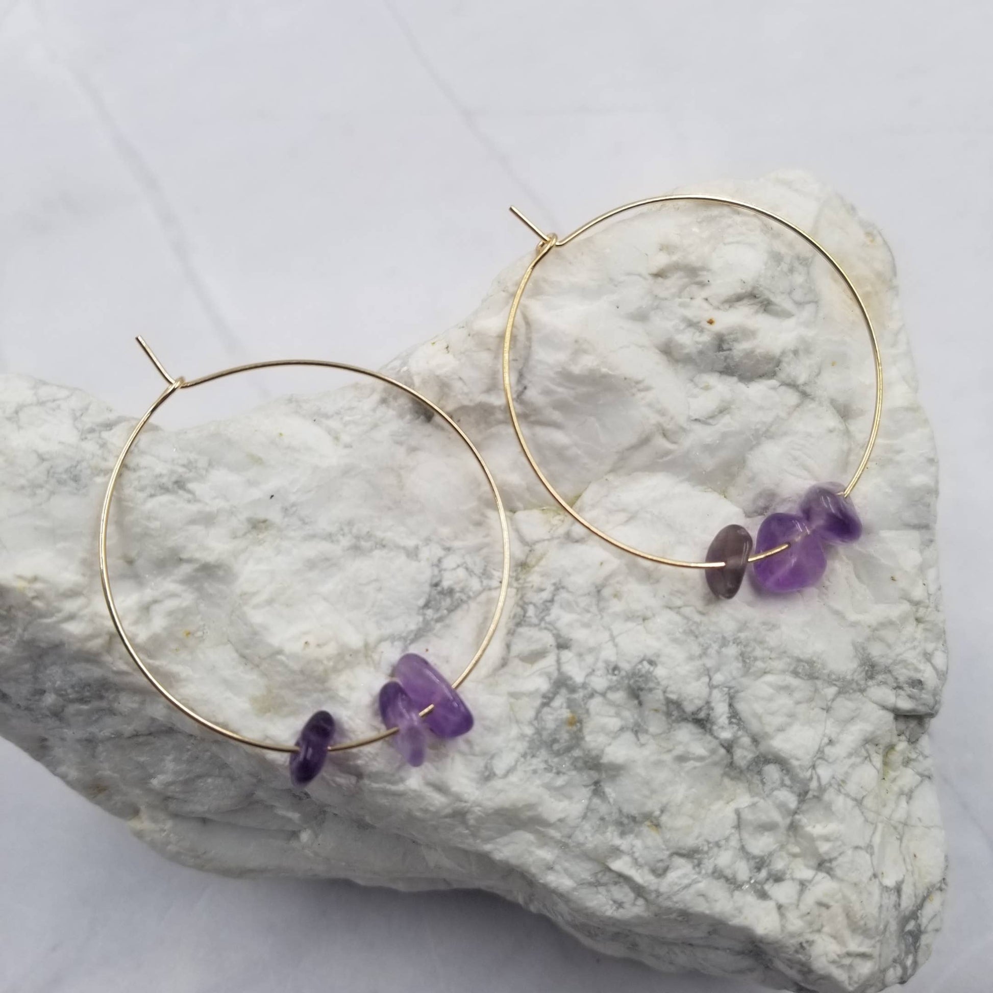 Add a touch of natural elegance to your look with our Crystal Gemstone Hoop Earrings. Handmade with care, these delicate earrings are the perfect accessory for any occasion. Each earring features a stunning natural gemstone that adds a pop of color and beauty to your ensemble. The feminine design of these earrings will make you feel confident and stylish, whether you're dressing up for a night out or adding a touch of glamour to your everyday outfit