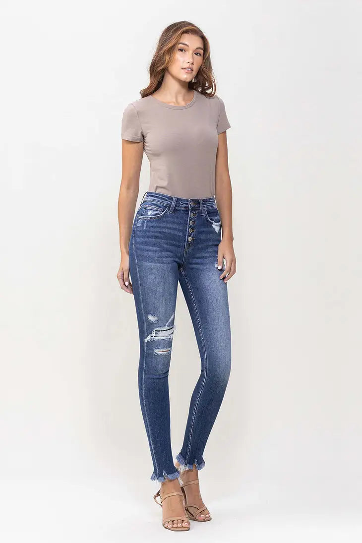 Haylie High Rise Button Up Distressed Skinny Jeans