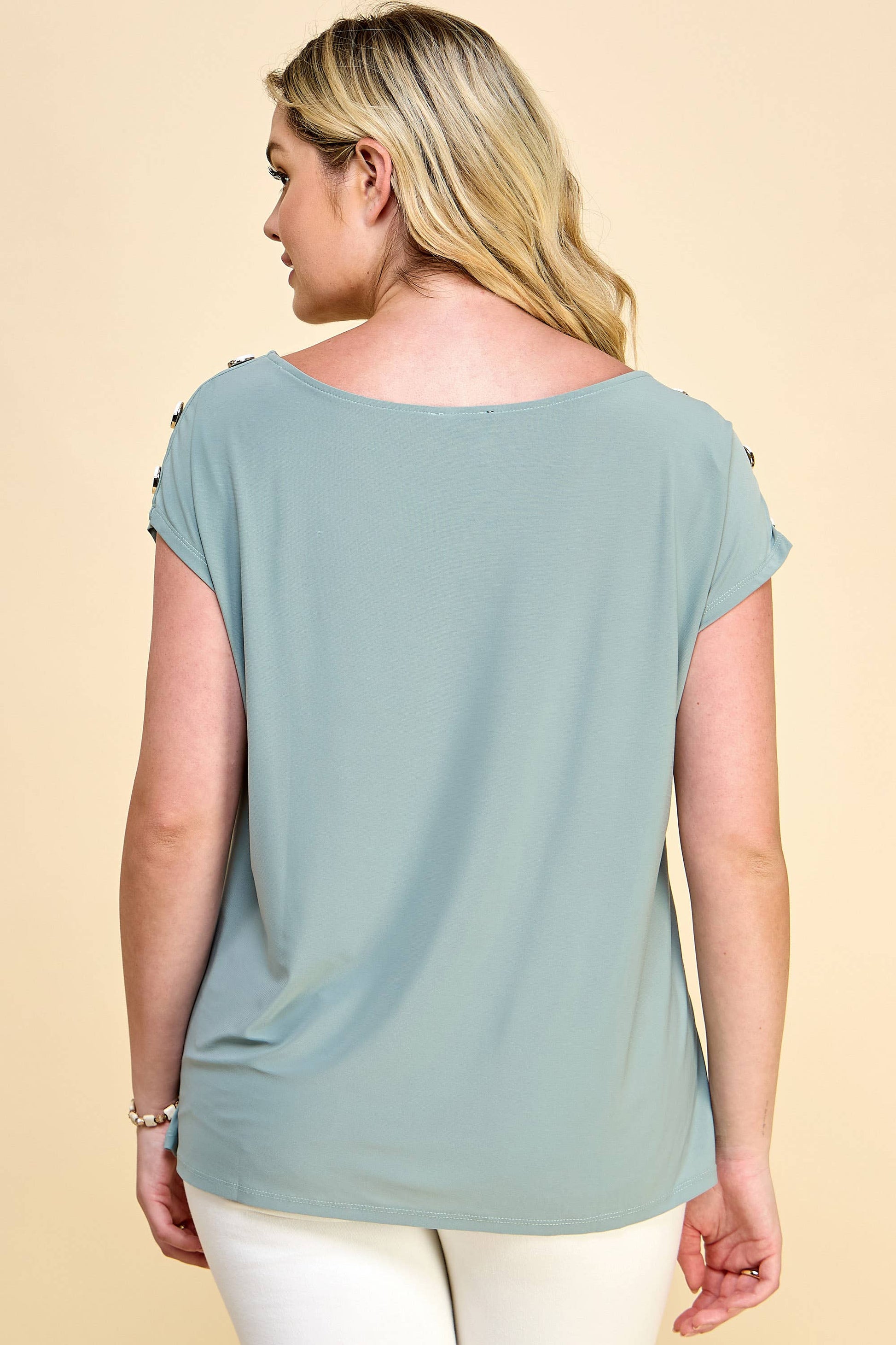 Step up your style game with our Short Sleeve Top featuring chic button details on the sleeves. This lightweight and comfortable top is perfect for any occasion, whether you're heading to a casual brunch or a night out with friends. The button detail adds a touch of sophistication, elevating the classic short sleeve design. Stay cool and stylish all day long in this versatile top that pairs effortlessly with your favorite jeans or skirts. Don't miss out on this must-have wardrobe staple. Add it to your cart now and experience the perfect blend of fashion and comfort!